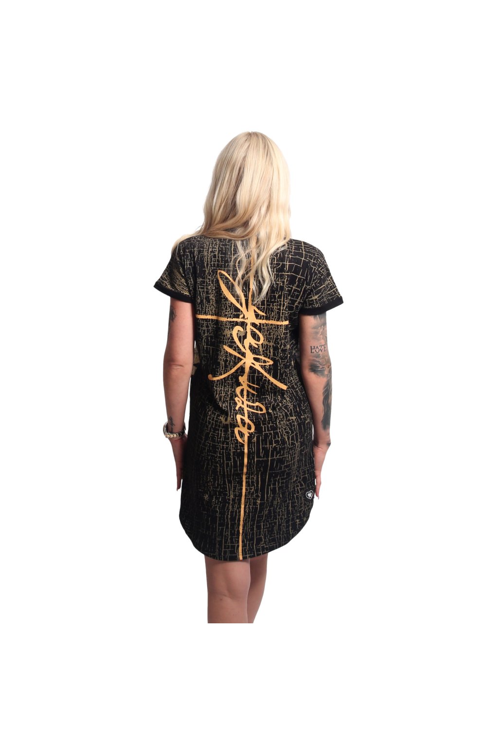 YAKUZA Women's Dress. This season's perfect t-shirt dress is relaxed: Not too tight, not too loose, just right. Featuring a classic design with short sleeves, a round neckline and a dropped hem. Finished with a vintage print and a Yakuza logo label on the side seam. Please pay attention to our size specifications and washing instructions below.