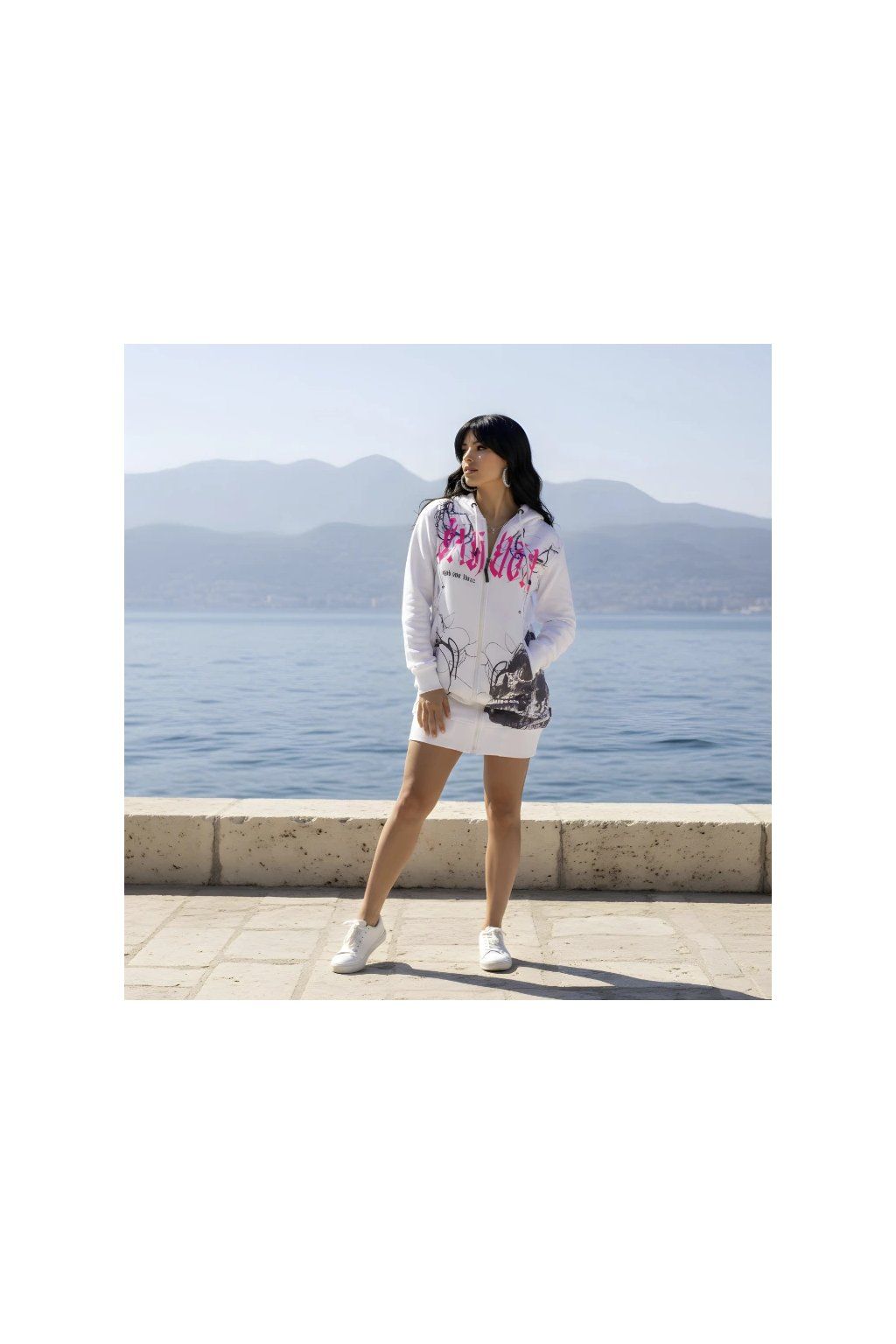 Women's sweatshirt Yakuza Pareidolia Long Zip 27104 white