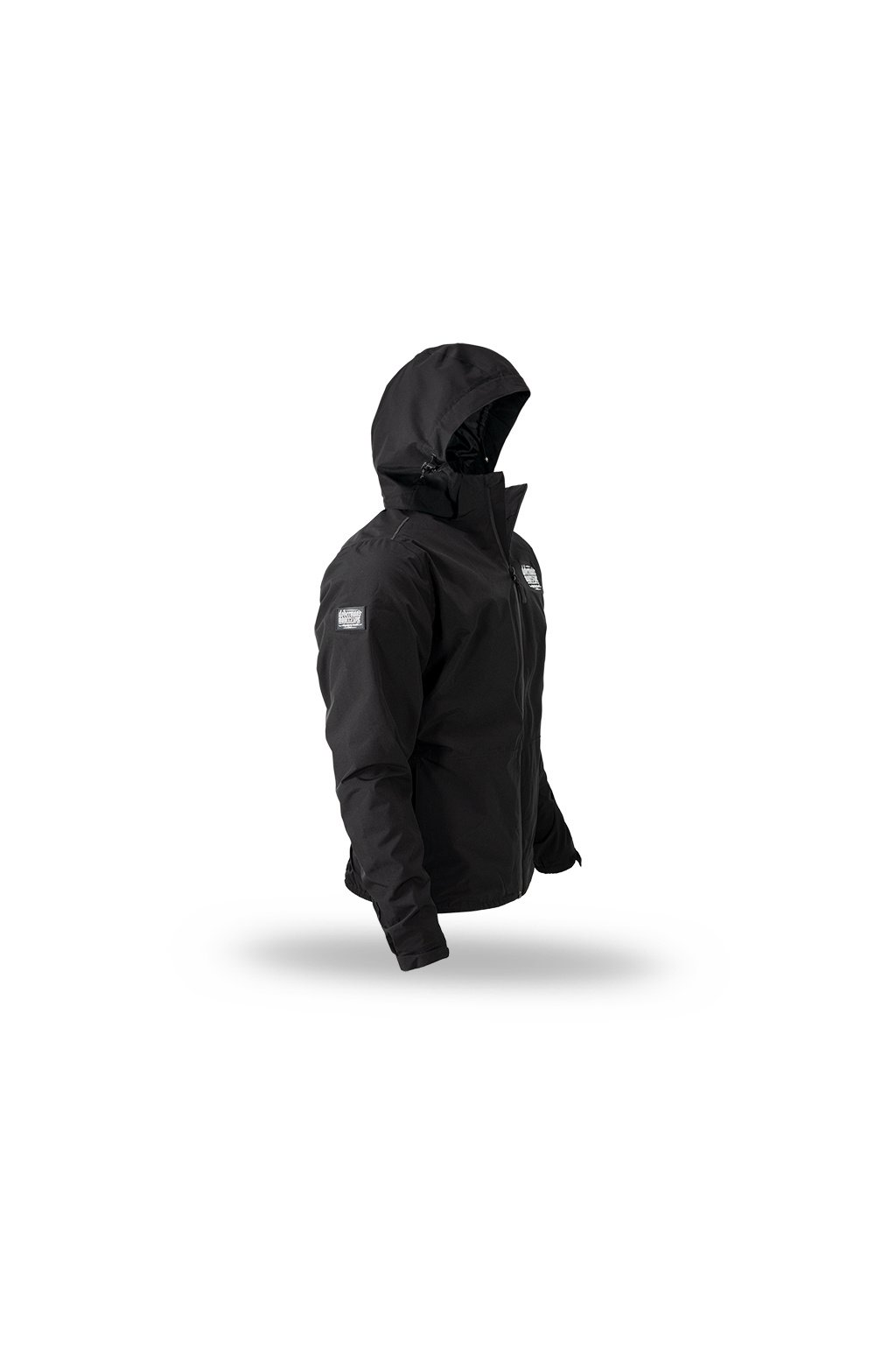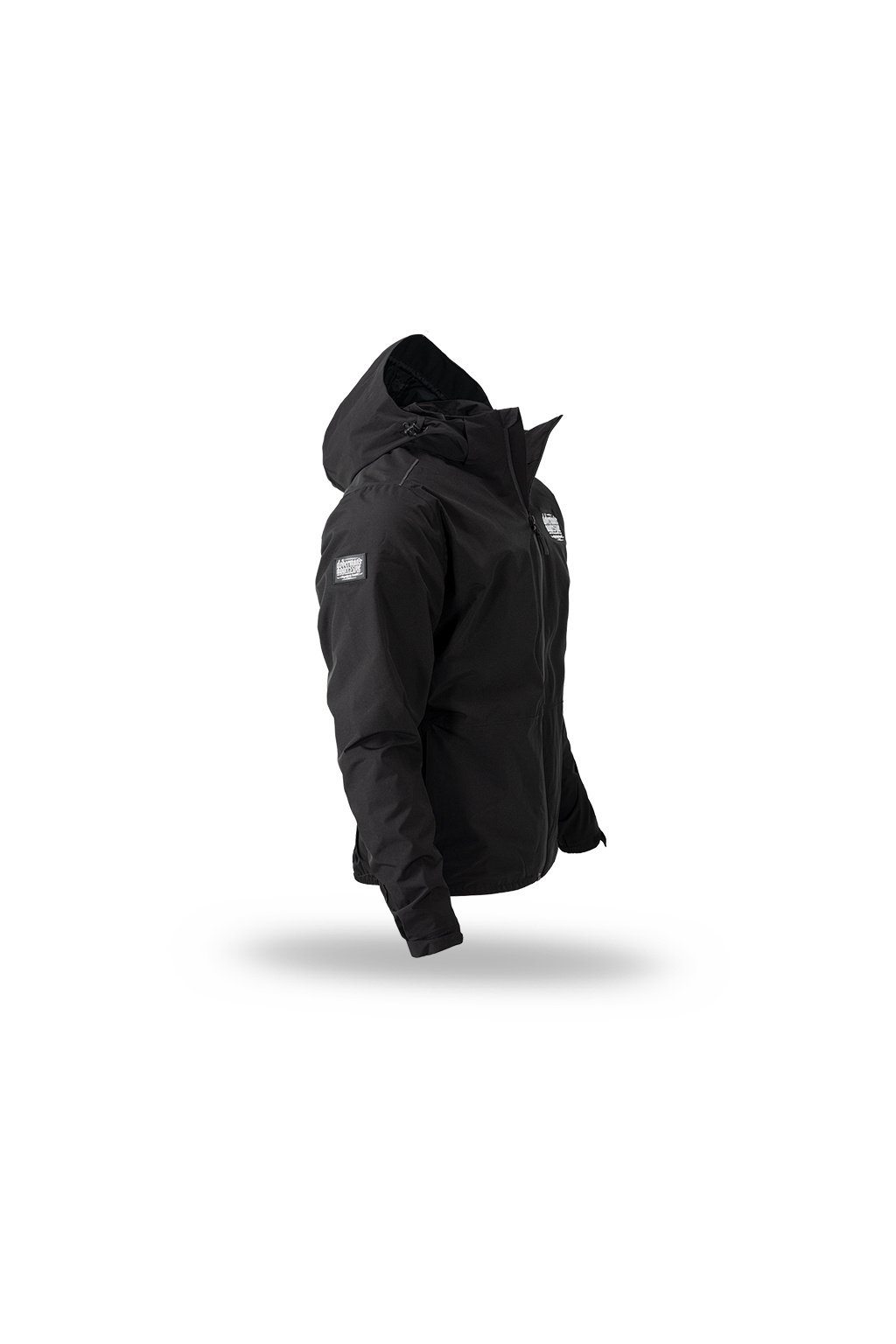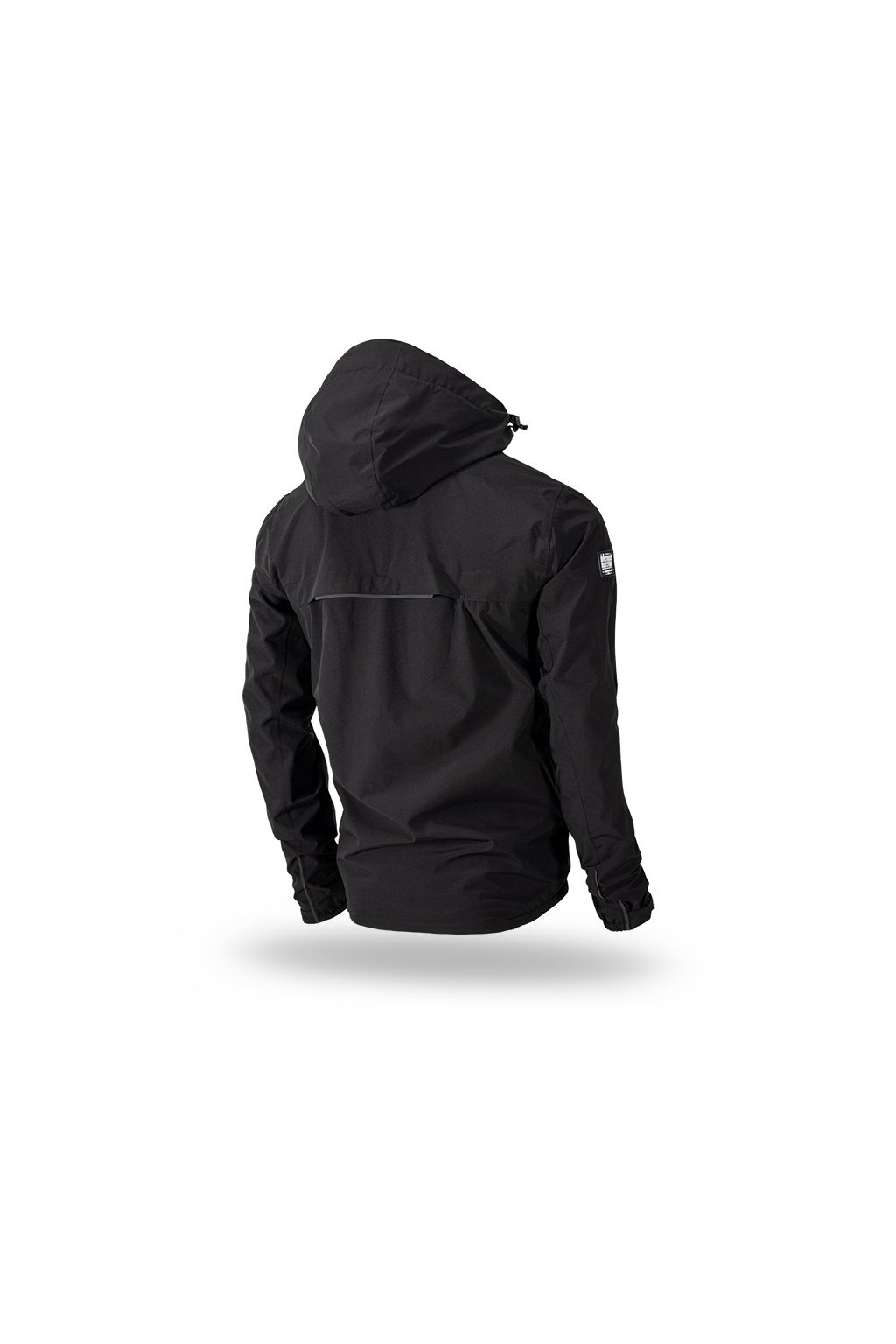 Made of lightweight, waterproof material that provides protection from wind and rain. The jacket has a removable, adjustable hood and elastic cuffs with additional Velcro adjustment, which allows for a better fit. There is a small manufacturer's logo on the front and an additional rubber patch on the sleeve. The back of the jacket is equipped with ventilation stitching for better air circulation. The jacket also has reflective elements that increase visibility after dark. Ideal for outdoor activities and everyday use.