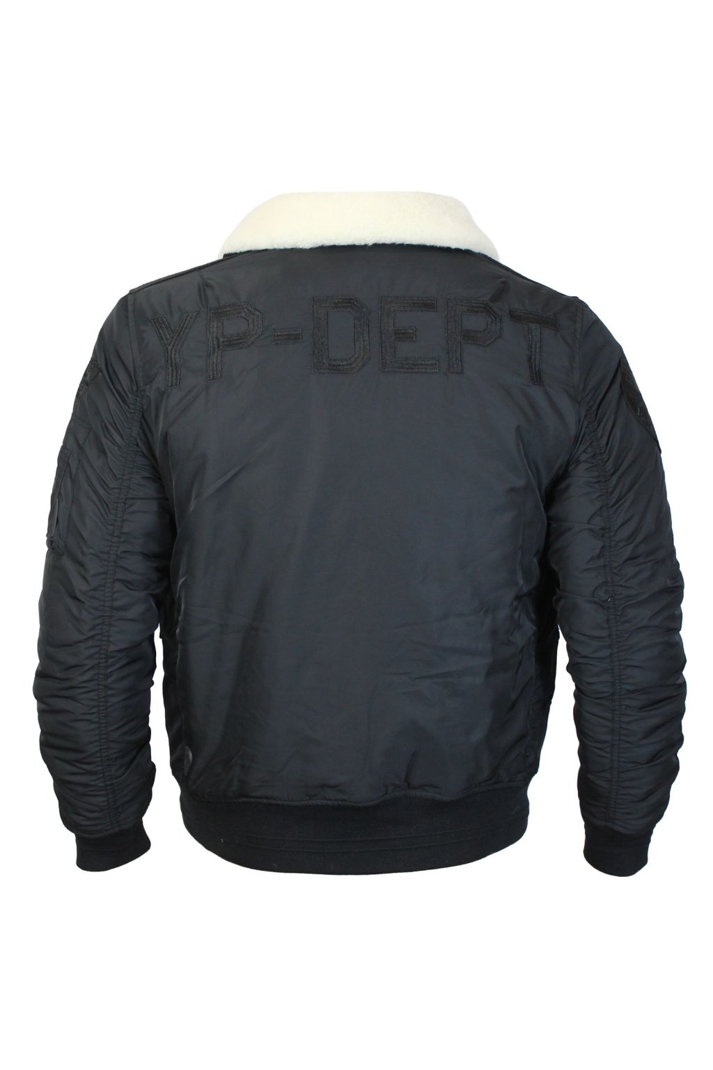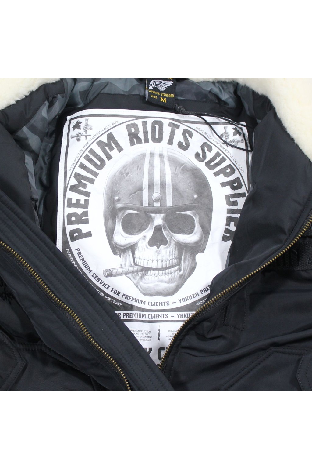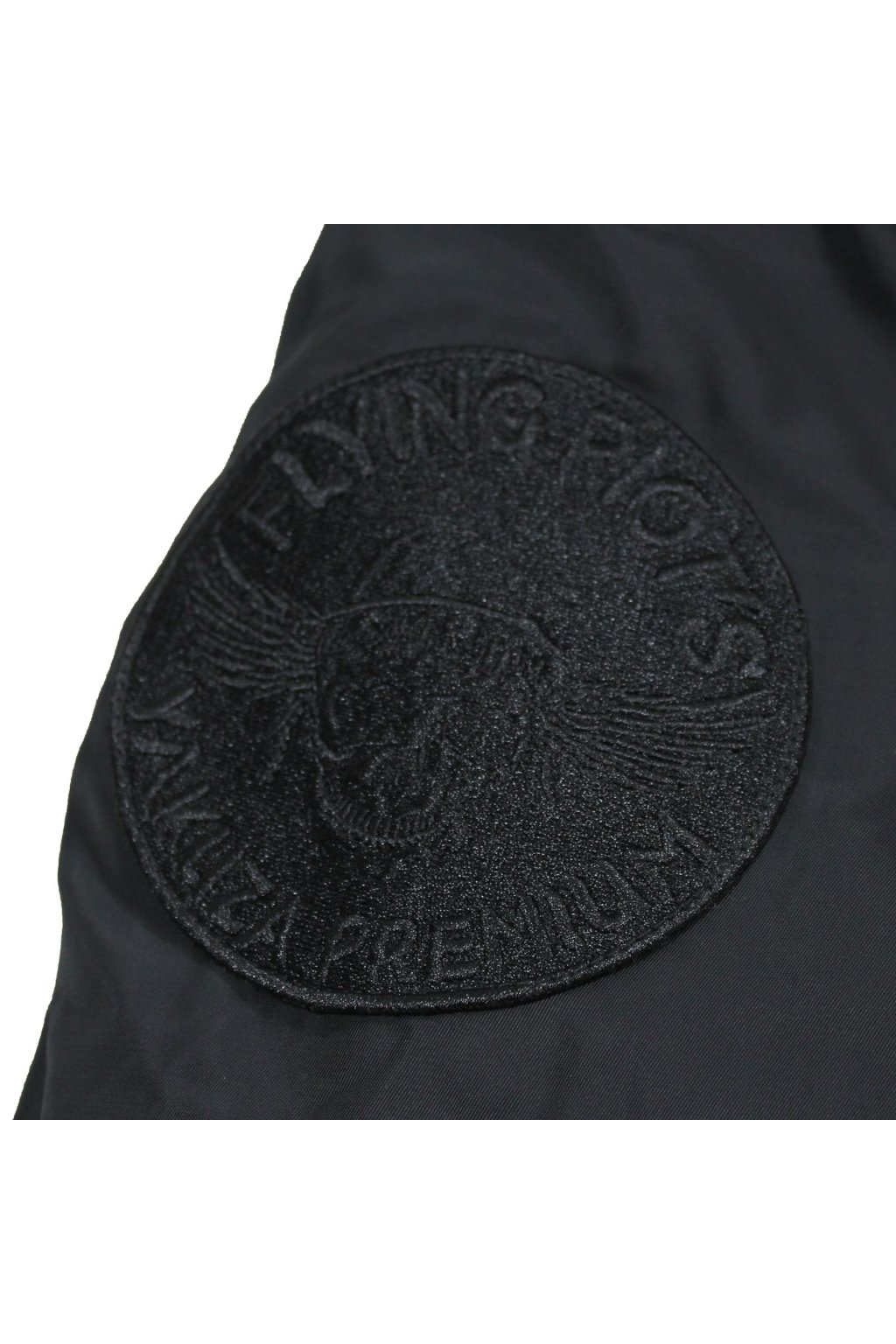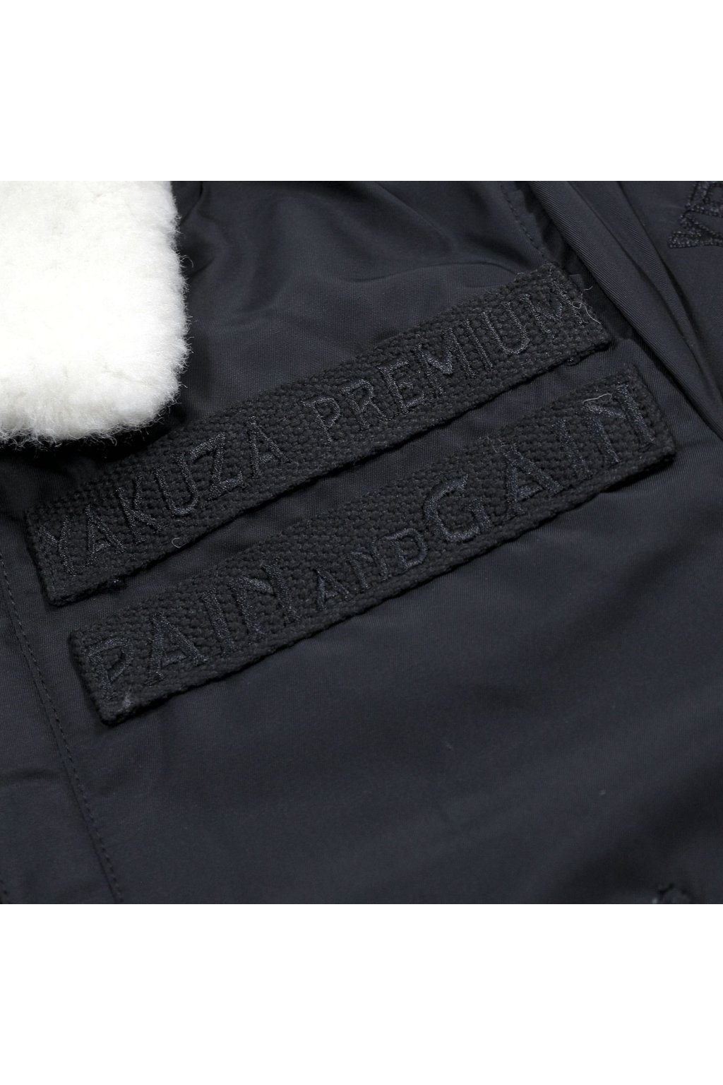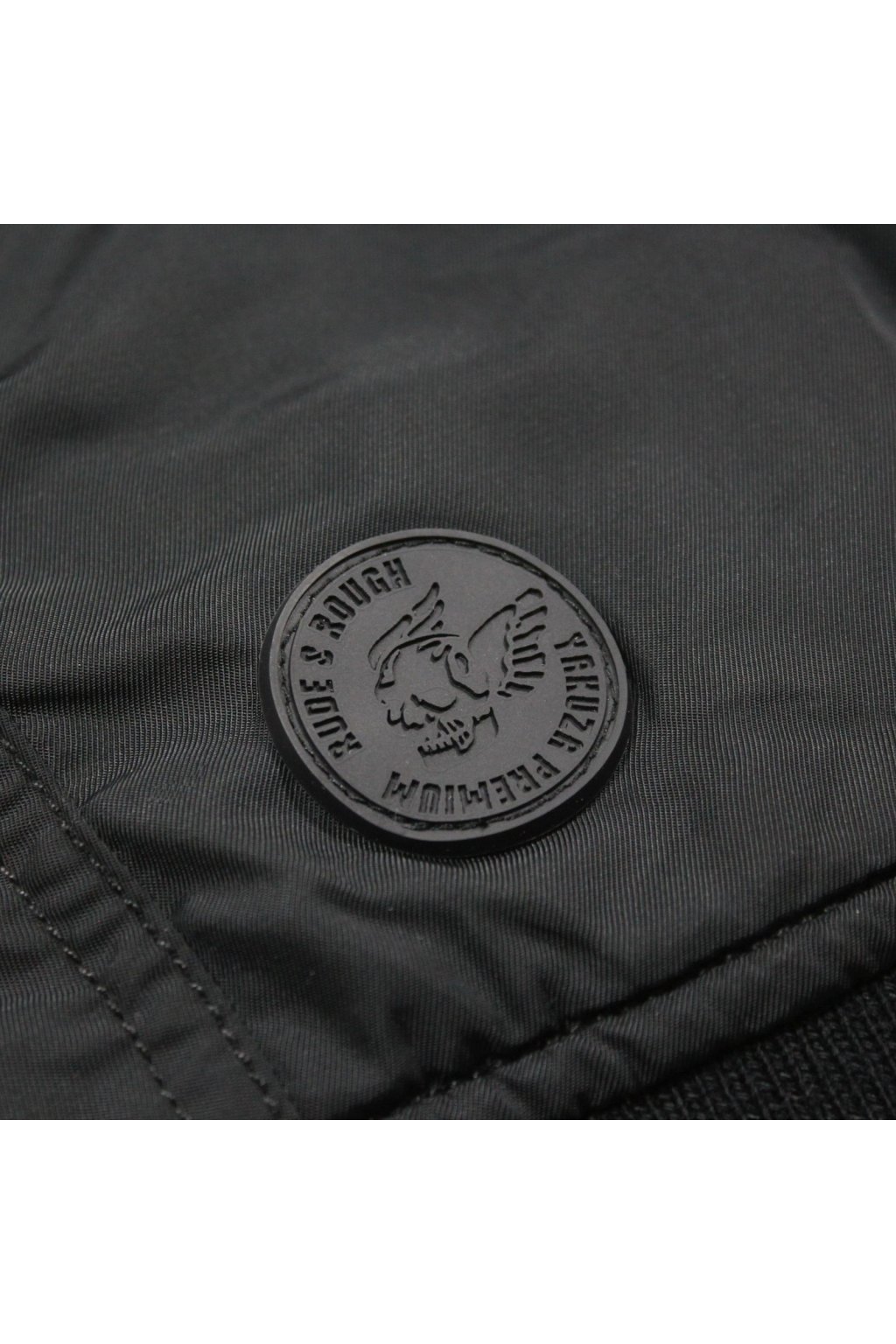 Limited edition 3965 bomber jacket from Yakuza Premium for men in black. This jacket not only keeps you warm, but also looks incredibly stylish. The jacket has a foldable plush collar, a double patch on the left chest and embroidery on the right side. There is another large embroidery on the upper back. What makes this bomber jacket special is its numerous details. It has an additional patch on the right sleeve, a practical pocket on the left sleeve and a number of pockets, including an inner one. The jacket has a fairly loose cut, typical of a bomber jacket, and fits true to size, but is slightly shorter than regular jackets. The cuffs also help to keep the heat where it belongs.