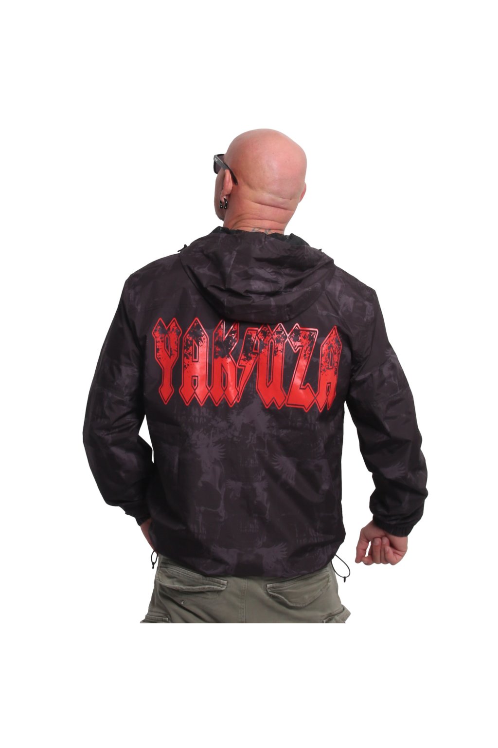 Men's YAKUZA ROCKSTARZ windbreaker jacket. Lightweight, water-repellent and relaxed jacket with a main zip fastening, two outer zip pockets and one inner closable pocket, elastic cuffs and a hood with a drawstring. The ideal companion for the transitional period. No matter the wind or rain: This mesh-lined windbreaker will keep you comfortable even on days when there is little sun. This jacket is finished with branded zips and a Yakuza logo print. Follow our size specifications and washing instructions below.