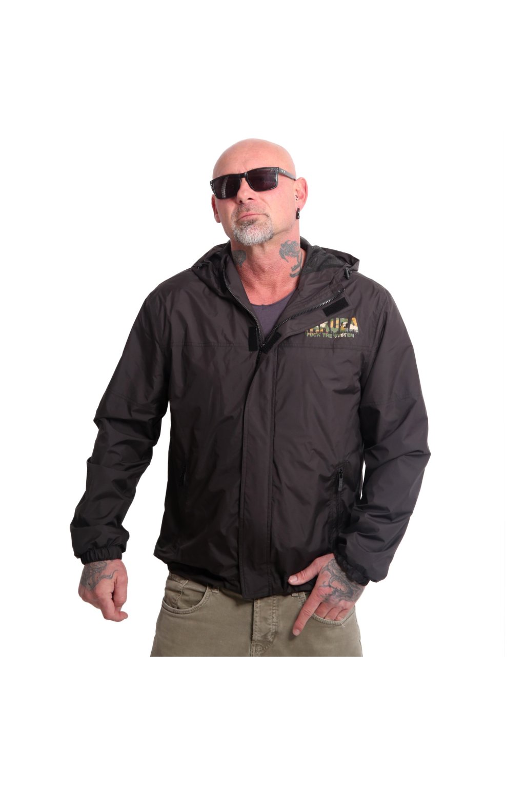 Men's YAKUZA SILENT windbreaker. Lightweight, water-repellent and loose-fitting jacket with a main zip fastening, two outer zip pockets and one inner closable pocket, elastic cuffs and a hood with a drawstring. The ideal companion for the transitional period. Whether windy or rainy: This mesh-lined windbreaker will keep you comfortable even on days with little sunshine. The jacket is finished with branded zips and a Yakuza logo print. Please see the size specifications and washing instructions below.