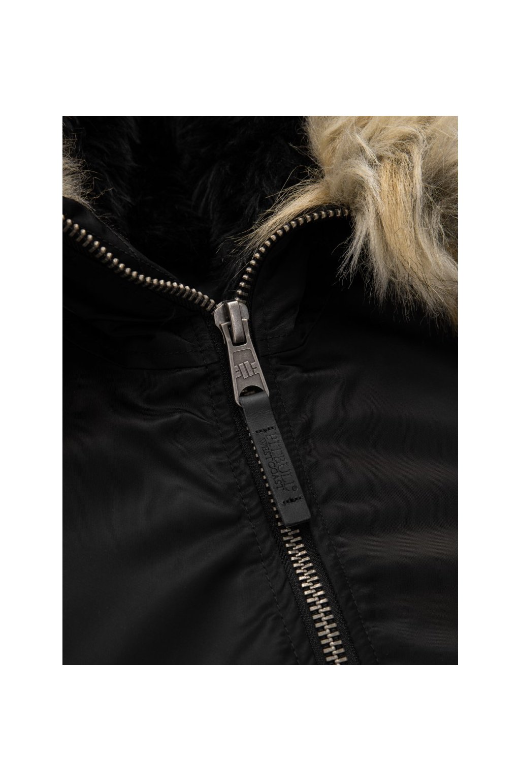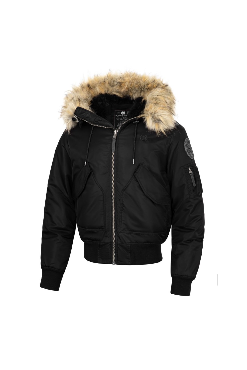 Men's winter jacket from the PitBull West Coast collection - HARVEST jacket. The jacket has a classic cut - bomber. The jacket is made of high-quality smooth nylon that is resistant to rain and wind. The jacket has a polyester lining and an insulated hood with a removable fur. On the front part you will find two side pockets. Inside the jacket there is a practical inner pocket for documents. Also a small pocket on the left sleeve. On the left side of the front part there is an embroidered Pitbull brand logo. All zippers on the jacket are metal. The sleeves and the lower part of the jacket end in thick wide cuffs. Composition of the outer material and lining: 100% nylon and filling: 100% polyester