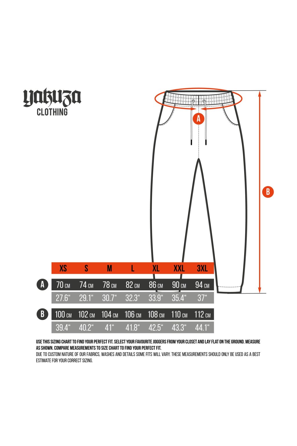 Women's YAKUZA FLOWER STYLE V02 sweatpants. These sweatpants are a must-have for lounging. Comfort meets elegance: The stylish loose fit makes them a must-have. These cuffed sweatpants feature a super soft lining, an elasticated waistband with drawstring and two front pockets. The sweatpants are decorated with a vintage logo print. Please refer to the size specifications and washing instructions below.