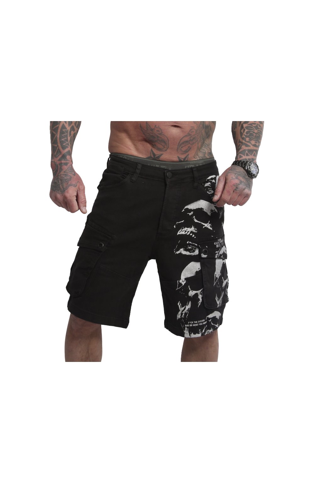 Men's YAKUZA ROPE TIME Cargo Shorts. You'll feel comfortable in these comfortable classic cargo shorts: Not too tight, not too loose, just right. These shorts add a rugged touch to your style with seven pockets, button fastening and belt loops. The shorts are decorated with a vintage print, an embossed Yakuza logo on the front pocket and a logo above the back pocket. Please see the size specifications and washing instructions below.