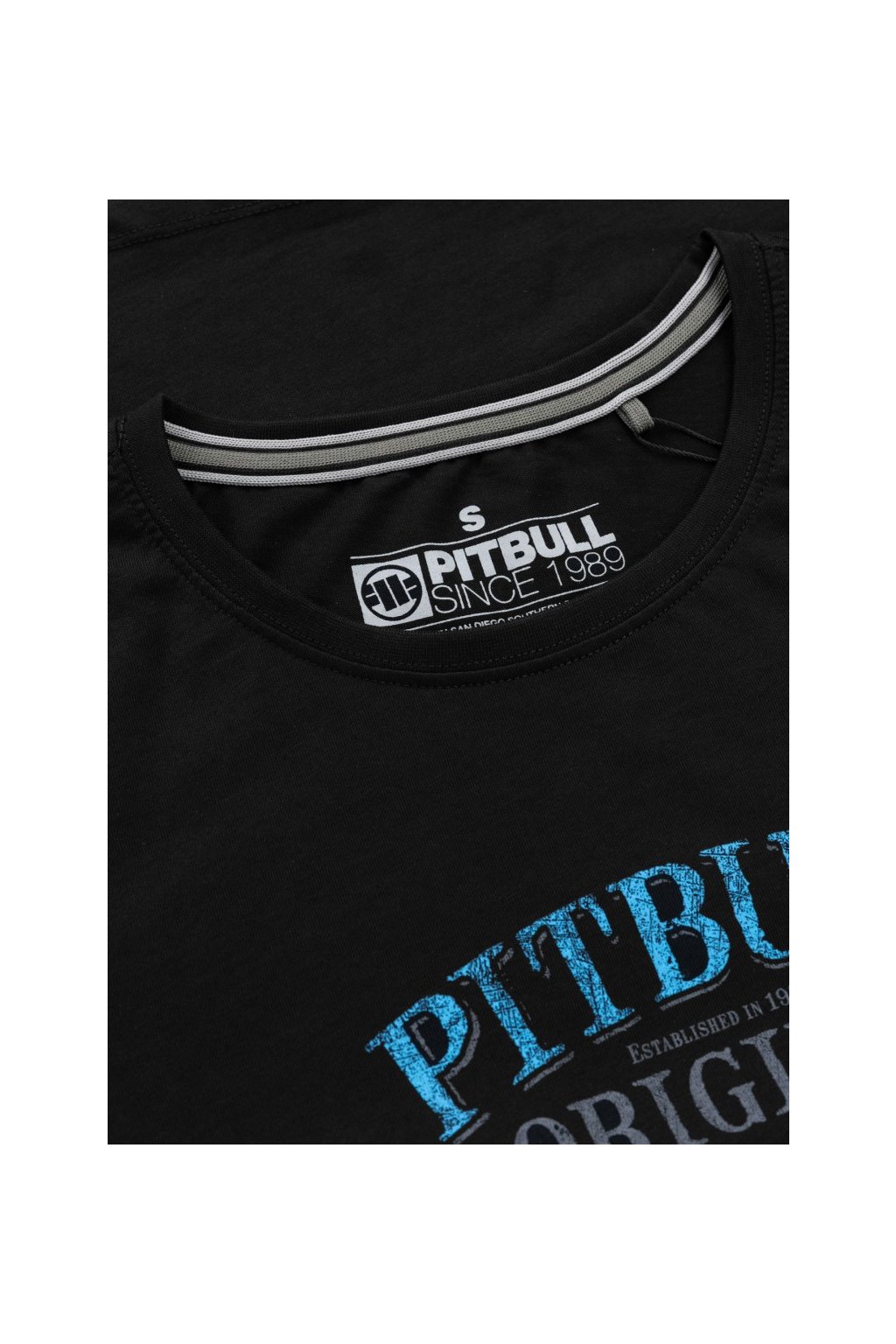 - large woven patch with the PitBull West Coast brand logo at the bottom of the T-shirt