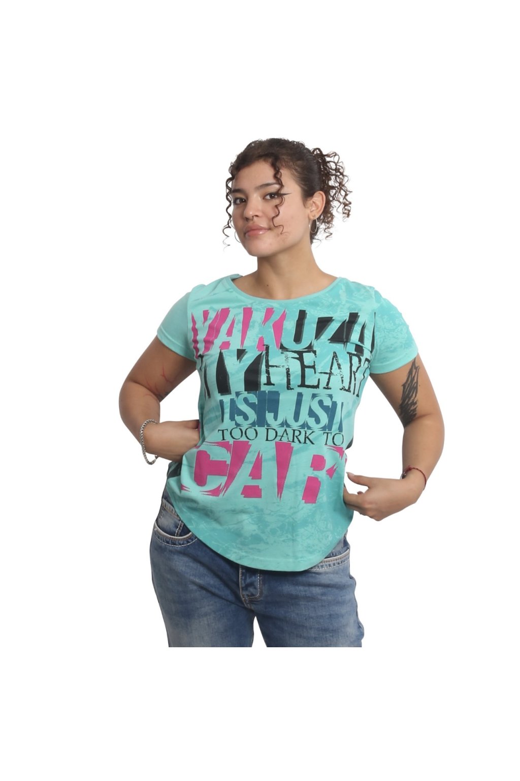 Women's T-shirt, Ideal for casual styling: Not too tight, not too loose, just right. This T-shirt has a wide round neckline, short sleeves and prints. The T-shirt has an extended back that looks unique. The T-shirt is completed with a logo on the side seam. Please follow the washing instructions and size specifications below.