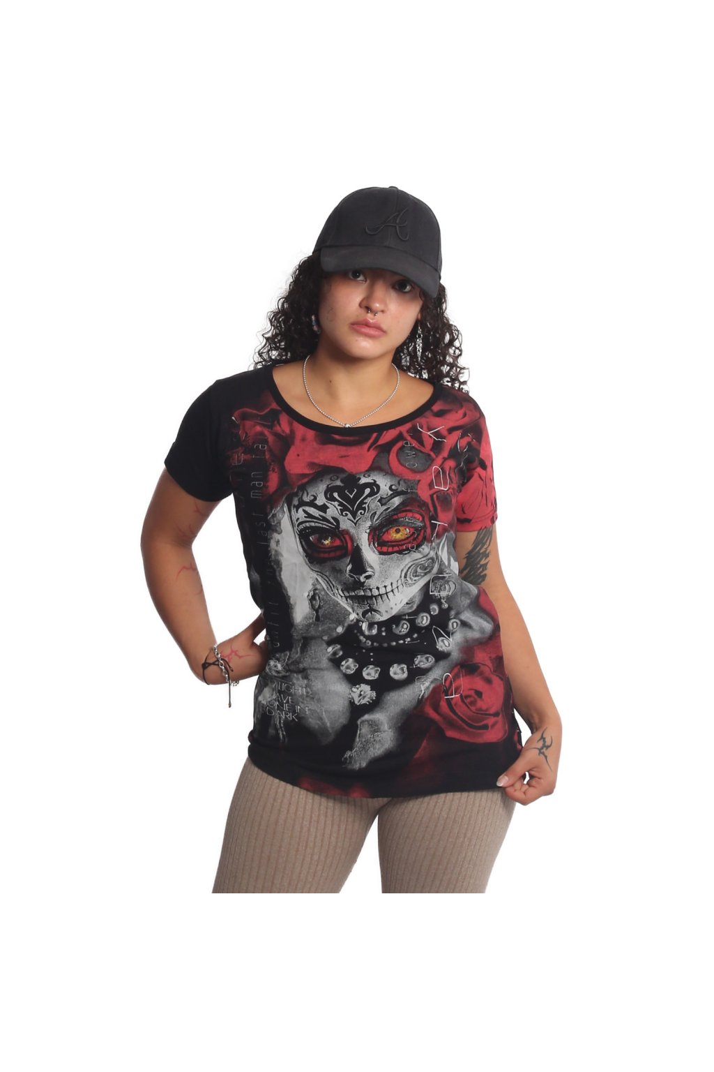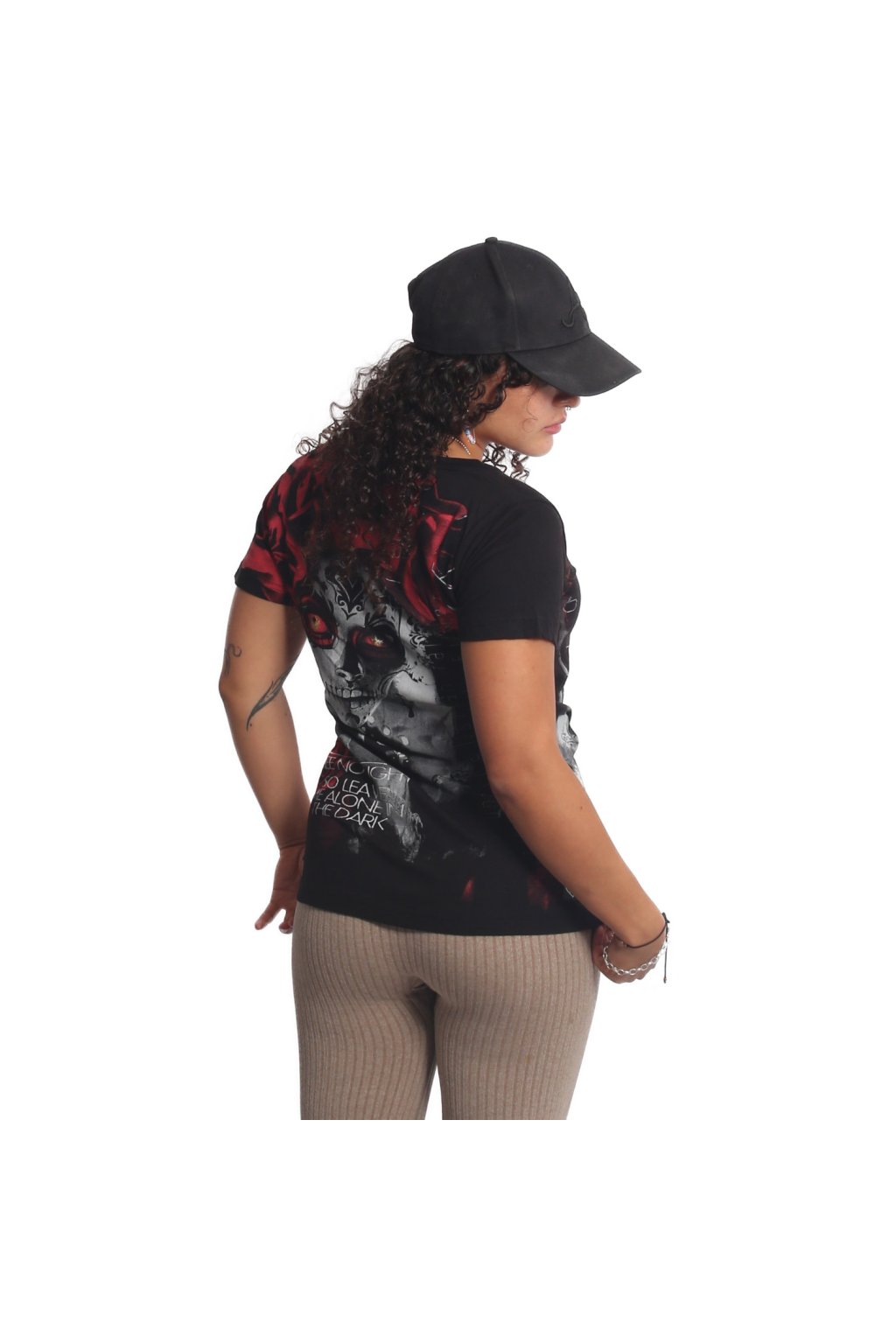 Women's T-shirt Yakuza Alone Curved Crew Neck 26111 black