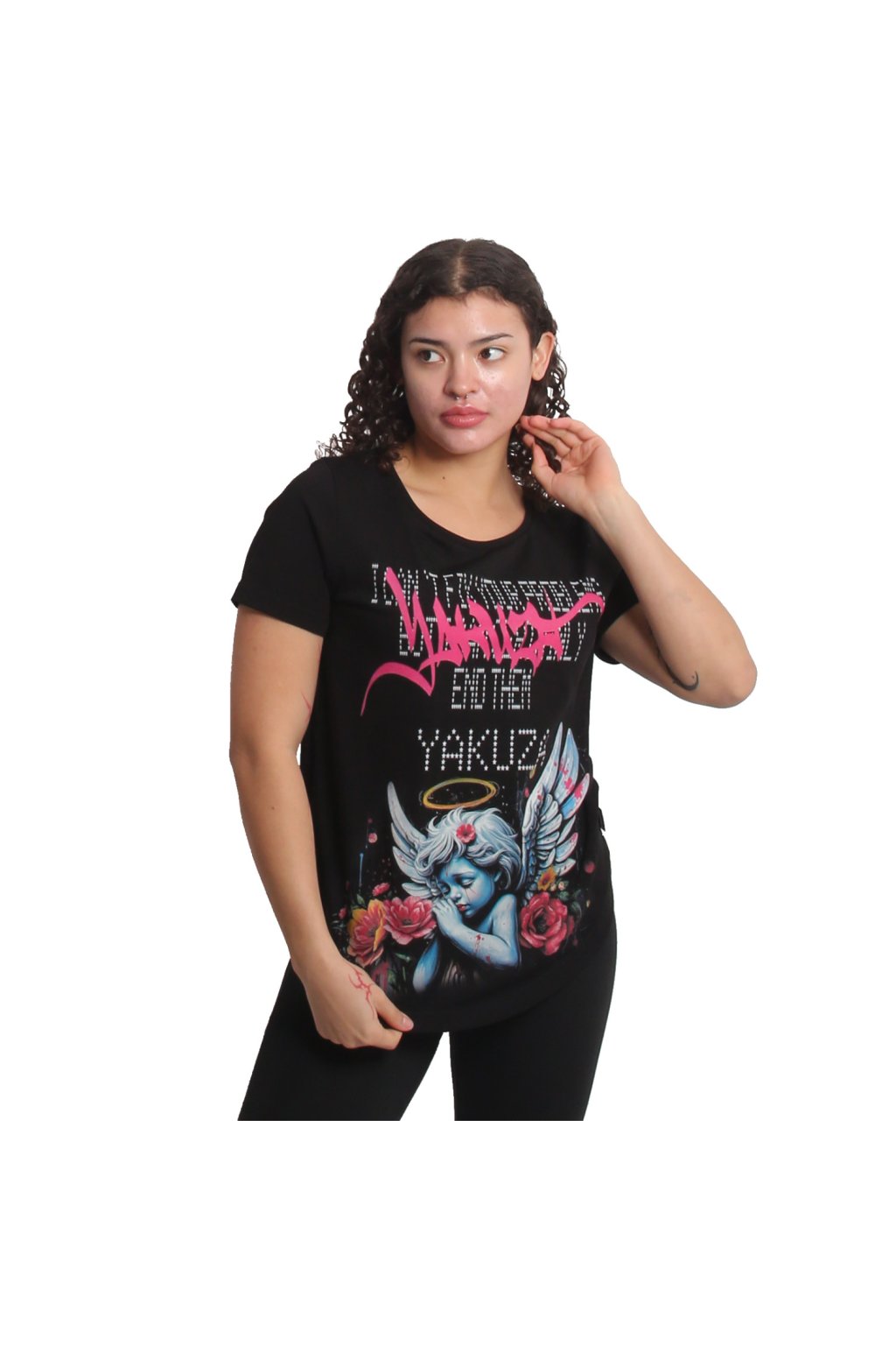 Women's T-shirt Yakuza Problems Curved Crew Neck 26105 black