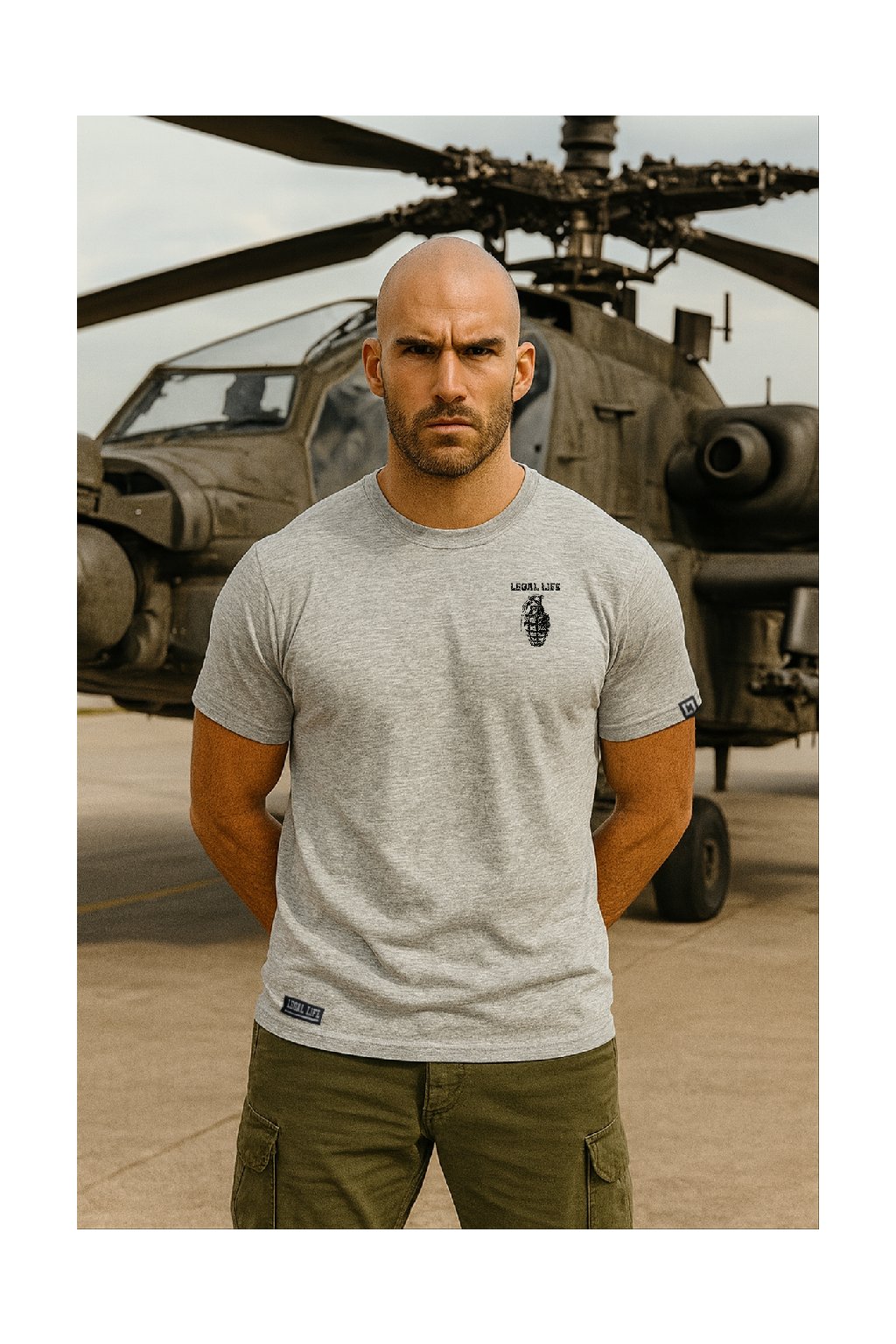 The design is discreet, the print is made using modern screen printing technology. The sleeve is decorated with a label depicting the Legal Life logo with two letters LL turned towards each other, at the bottom of the waist there is another larger label with the logo and a baseball bat, these gadgets take the T-shirt to another level, each label is made and hand-sewn here in the Czech Republic, just like the prints. The T-shirt is of very high quality, we took great care when choosing textiles for our Legal Life brand.