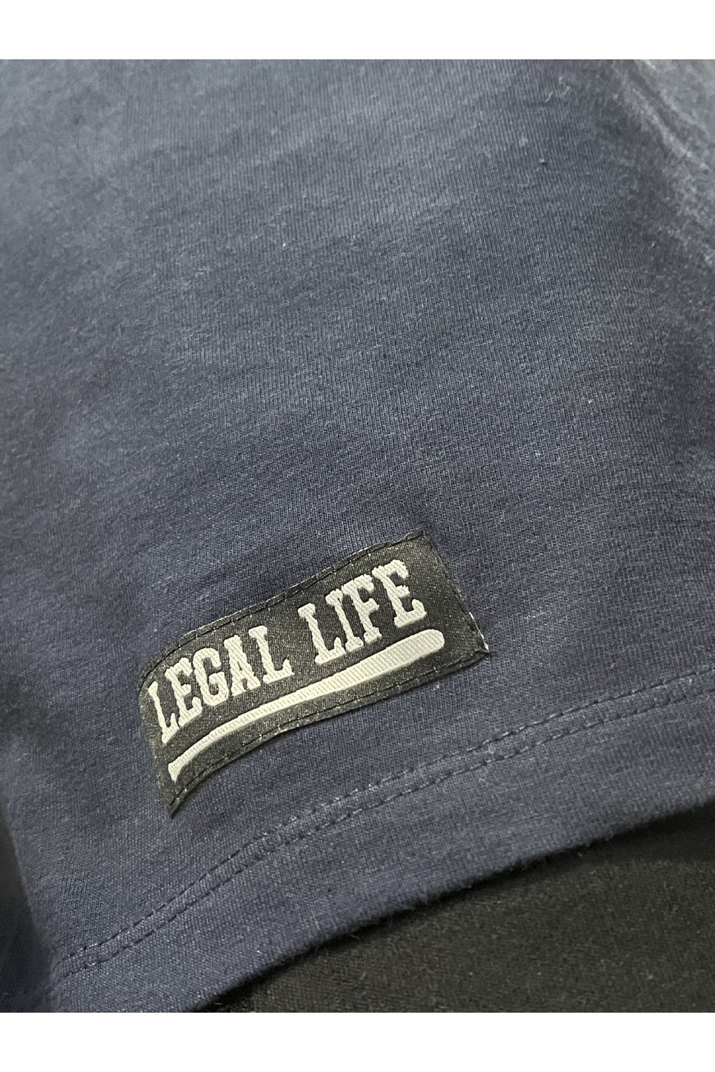 The design is discreet, the print is made using modern screen printing technology. The sleeve is decorated with a label depicting the Legal Life logo with two letters LL turned towards each other, at the bottom of the waist there is another larger label with the logo and a baseball bat, these gadgets take the T-shirt to another level, each label is made and hand-sewn here in the Czech Republic, just like the prints. The T-shirt is of very high quality, we took great care when choosing textiles for our Legal Life brand.
