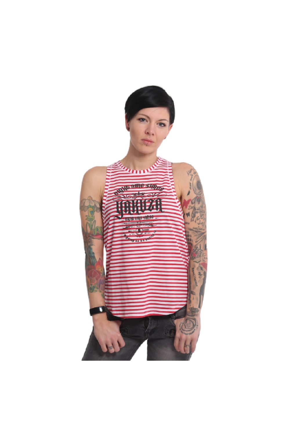 Women's tank top Yakuza Script Stripe Loose 16127 red/white