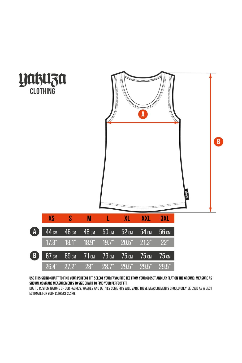 YAKUZA DEATH BLOOM Women's Tank Top. A relaxed, cool and comfortable shirt: Not too slim, not too loose, just right. Adds a vintage touch to your wardrobe. Finished with a crew neck, dropped arms, as well as an all-over print and Yakuza logo label on the side. Please pay attention to our size specifications and washing instructions below.