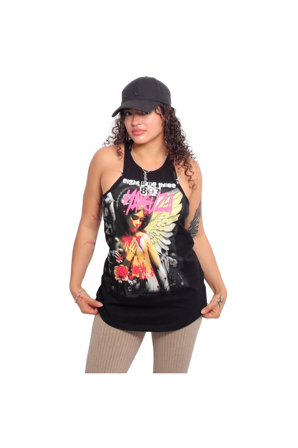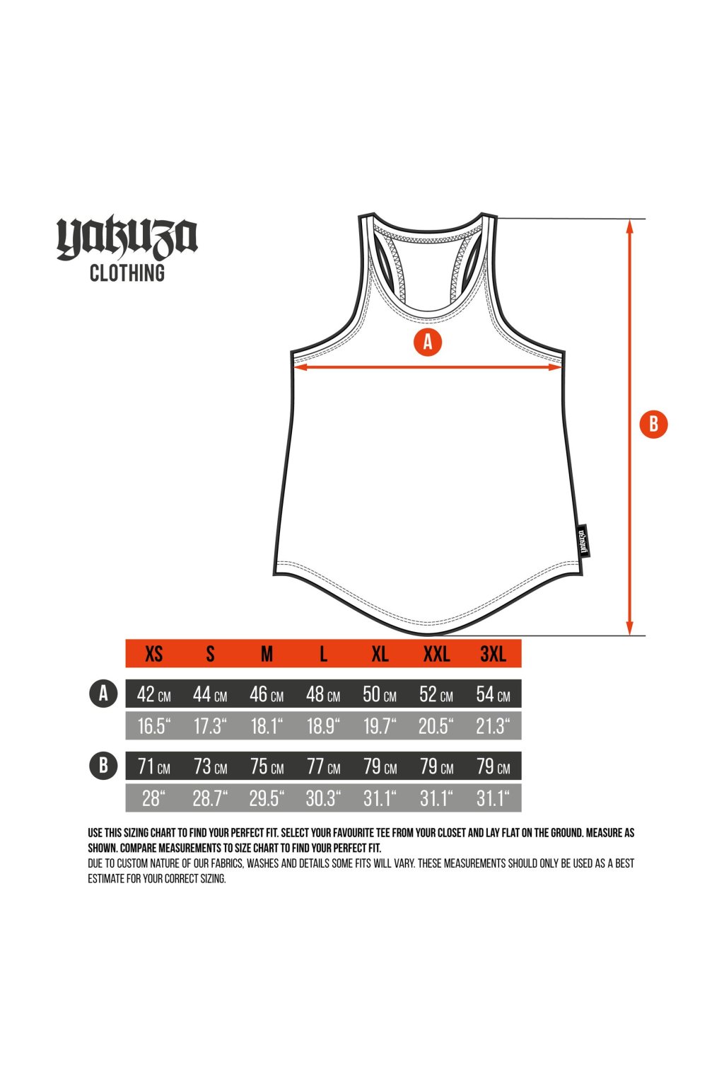 YAKUZA SORROW Women's Tank Top. A relaxed, cool and comfortable tank top: Not too thin, not too loose, just right. Adds a vintage twist to your wardrobe. Finished with a scoop neck, back panel and curved hem, as well as a graphic print and Yakuza logo label on the side. Please pay attention to our size specifications and washing instructions below.