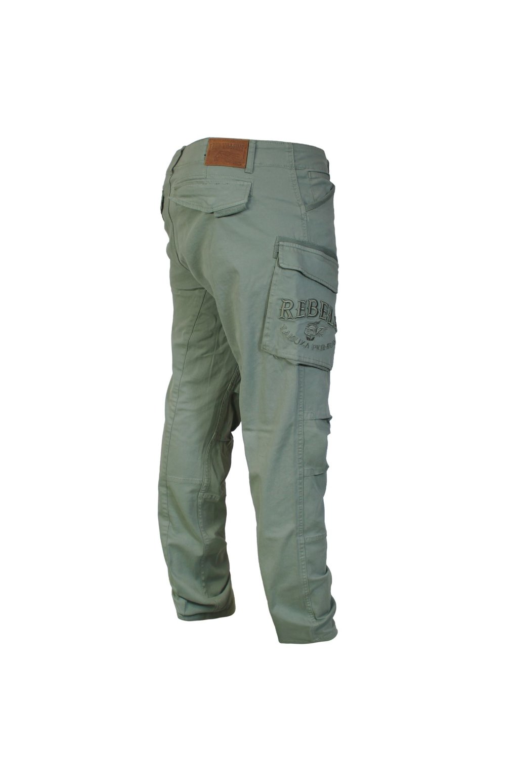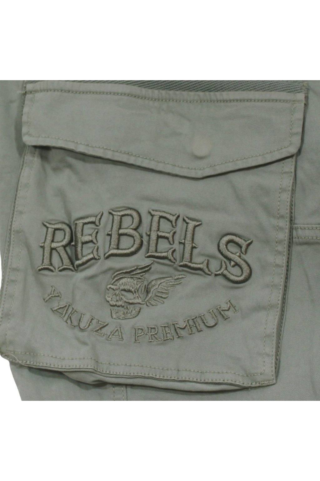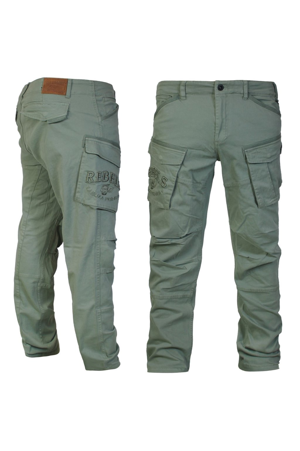 Long cargo pants 3952 in black from Yakuza Premium Selection. These jeans have two side cargo pockets. The right pocket is decorated with elaborate 3D embroidery with the inscription "Rebels". The pants also have two upper hand pockets. Of course there are two back pockets, each with a press stud fastening. The special feature of these cargo pants is their relaxed tapered cut. They are very comfortable, without tight cuffs at the ankles. Provocative design and high-quality fabric.