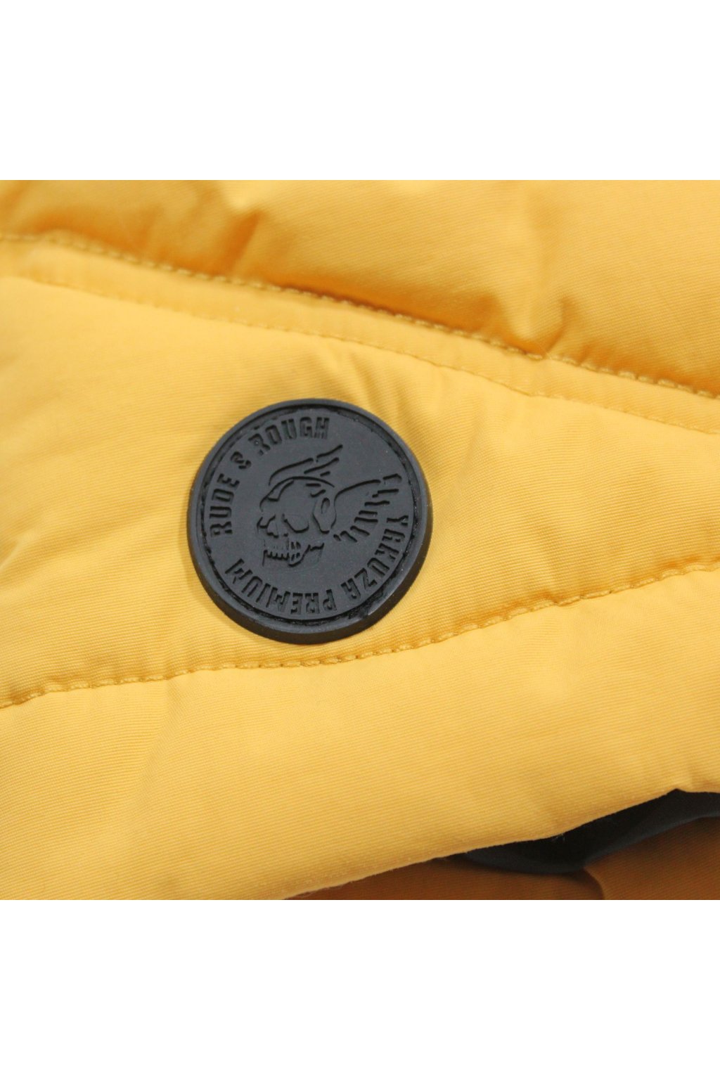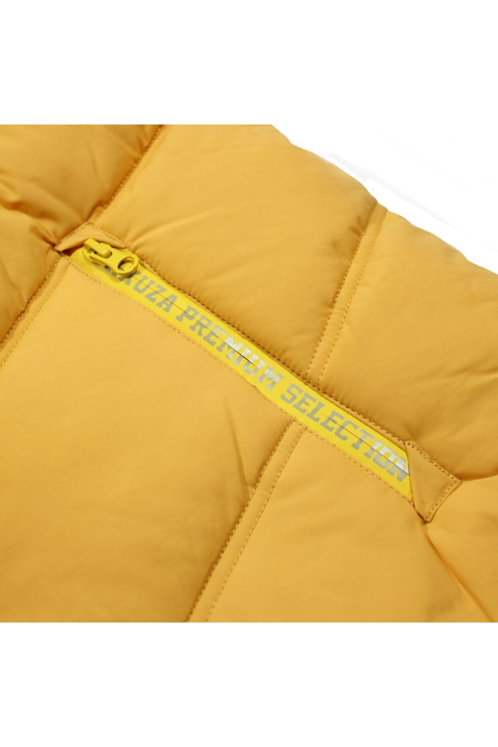 Limited edition 3966 vest in yellow from Yakuza Premium for men. This quilted vest will not only keep you warm, but also looks incredibly stylish. It has a removable hood, a double patch on the left chest and two front pockets. There is a large harlequin print on the back. The printed zippers make this quilted vest unique. The vest has a fairly loose fit and is true to size.